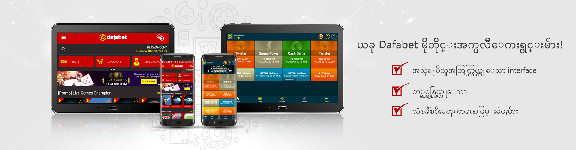 Dafabet သည္အာရွ၏ထိပ္တန္းအြန္လိုင္းဂိမ္း ဝက္ဘ္ဆိုက္ျဖစ္ၿပီးအားကစားေလာင္းျခင္း၊ အြန္လိုင္းေလာင္းကစား႐ုံ၊ အြန္လိုင္းဖဲခ်ပ္ႏွင့္ အြန္လိုင္းဂိမ္းမ်ားကိုကစားသည္။ ကြၽႏ္ုပ္တို႔သည္ 2၀၀4 ခုႏွစ္မွစ၍ အာရွပစိဖိတ္ ေစ်းကြက္ကို ၀န္ေဆာင္မႈေပးခဲ့သည္။ ဖိလစ္ပိုင္တြင္လိုင္စင္ရၿပီး စည္းမ်ဥ္းသတ္မွတ္ထားသည္။ Dafabetသည္ ္ဤစည္းမ်ဥ္းမ်ားအရတင္းၾကပ္စြာ လုပ္ေဆာင္သည္။